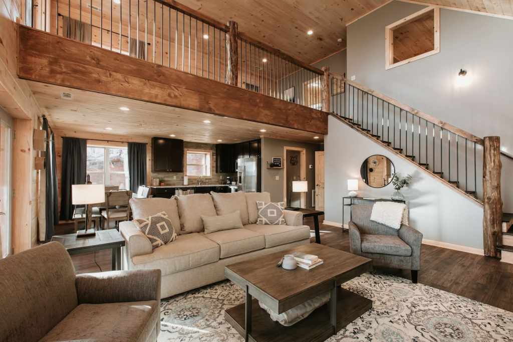 Take some time off in an architectural wonder. This six-bedroom modern cabin has eight balconies and overlooks the seasonal White River. Equipped with three hammocks, a grill and an umbrella, this cabin will give you an experience you’ll never forget.