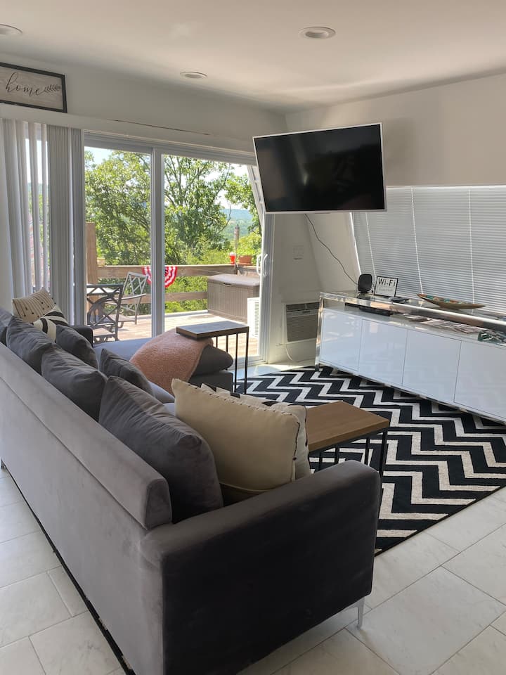 Rent your very own A-Frame on a private road in the Catskills Forest. Enjoy this renovated 1960s cabin and its original wood ceilings during a quiet weekend with friends and be sure to use its accommodating outdoor amenities.