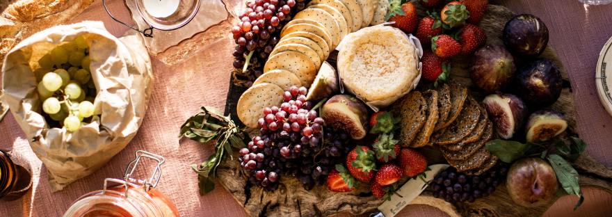 Make sure your picnic has a strong foundation. Get a blanket big enough for you, your guests and your food. Pick something that provides a comfortable layer between you and the ground and can withstand any spills or stains.